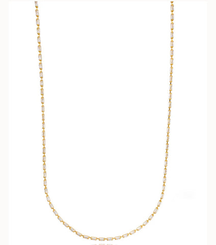 Gold chain with banquette-cut stones. Delicate but deliberate. “Kindred” is for the soul recognizers- the ones who see each other clearly, even in the quiet.