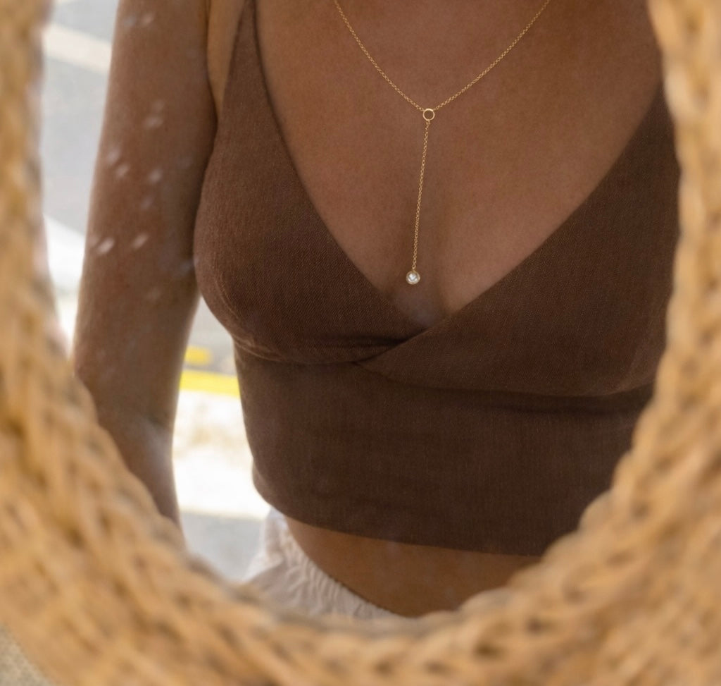 The Heartstring Necklace is a symbol of the invisible pull that connects us to what we love most. A delicate gold chain flows into a graceful drop, finishing with a single luminous stone—representing the moment your heart tugs and you just know.